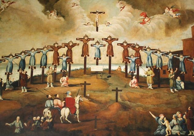 Papa Gregorio XIII nel 1582 riceve a Roma la prima visita di una delegazione giapponese concessa dallo shogun Hideyoshi. Inaspettatamente Hideyoshi cambia opinione politica verso i cristiani. Avvia un periodo di persecuzione verso i cristiani per timore che la religione di Roma indebolisca l’unità nazionale.
